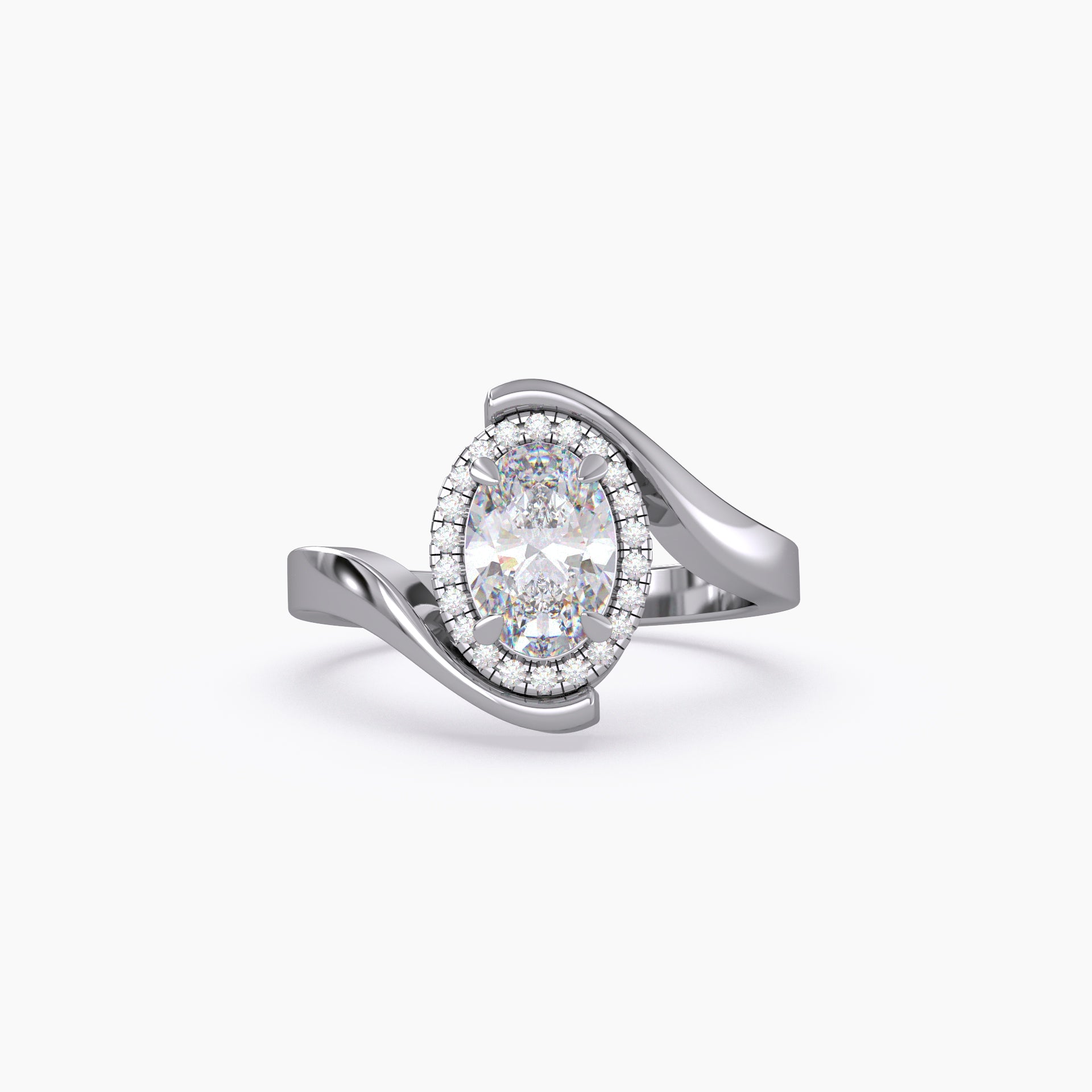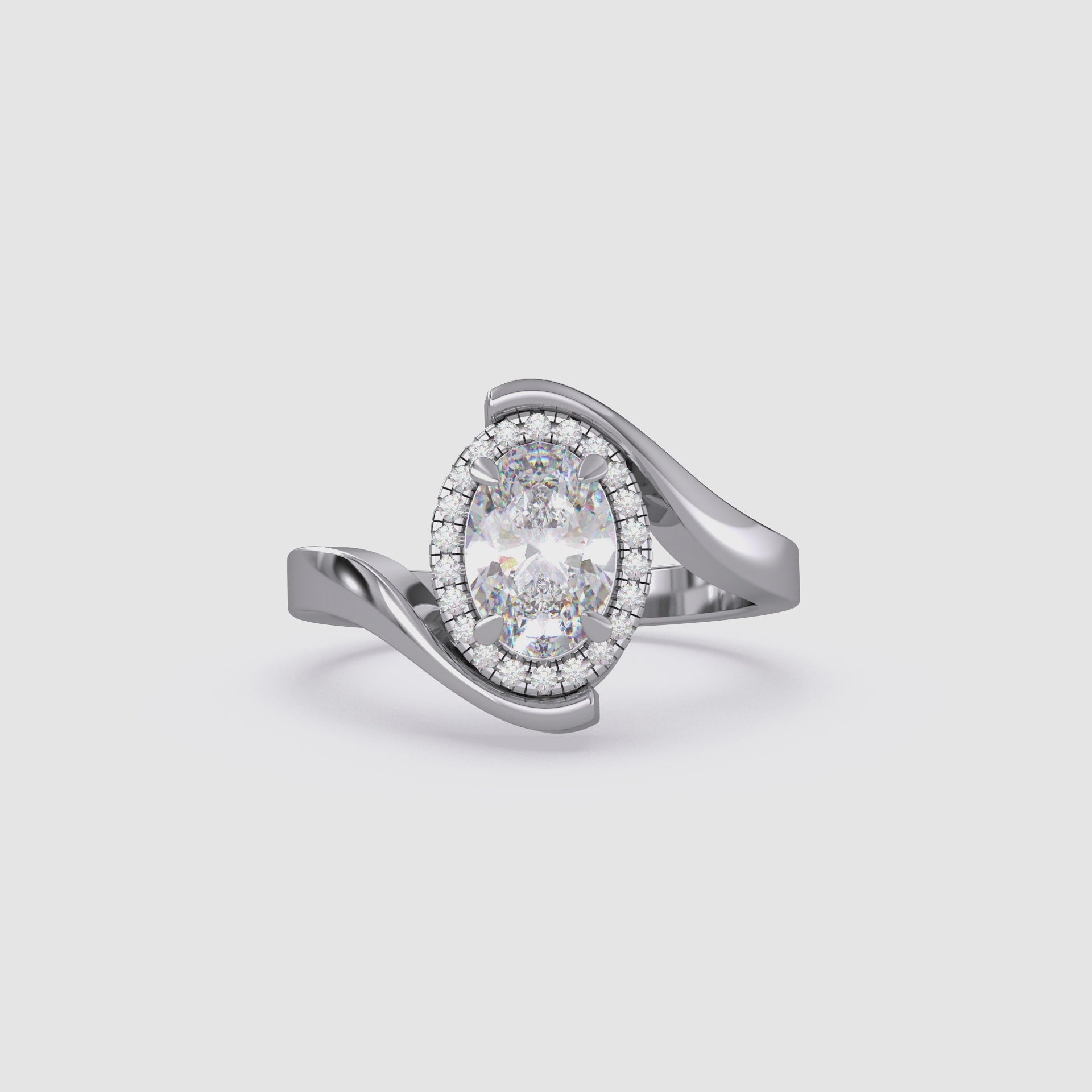 Oval Halo Curved Bypass Lab Grown Diamond Ring